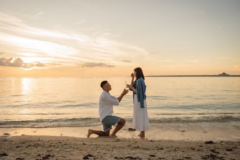沖縄の夕日に包まれて。ビーチで叶える、一生に一度のサプライズプロポーズ